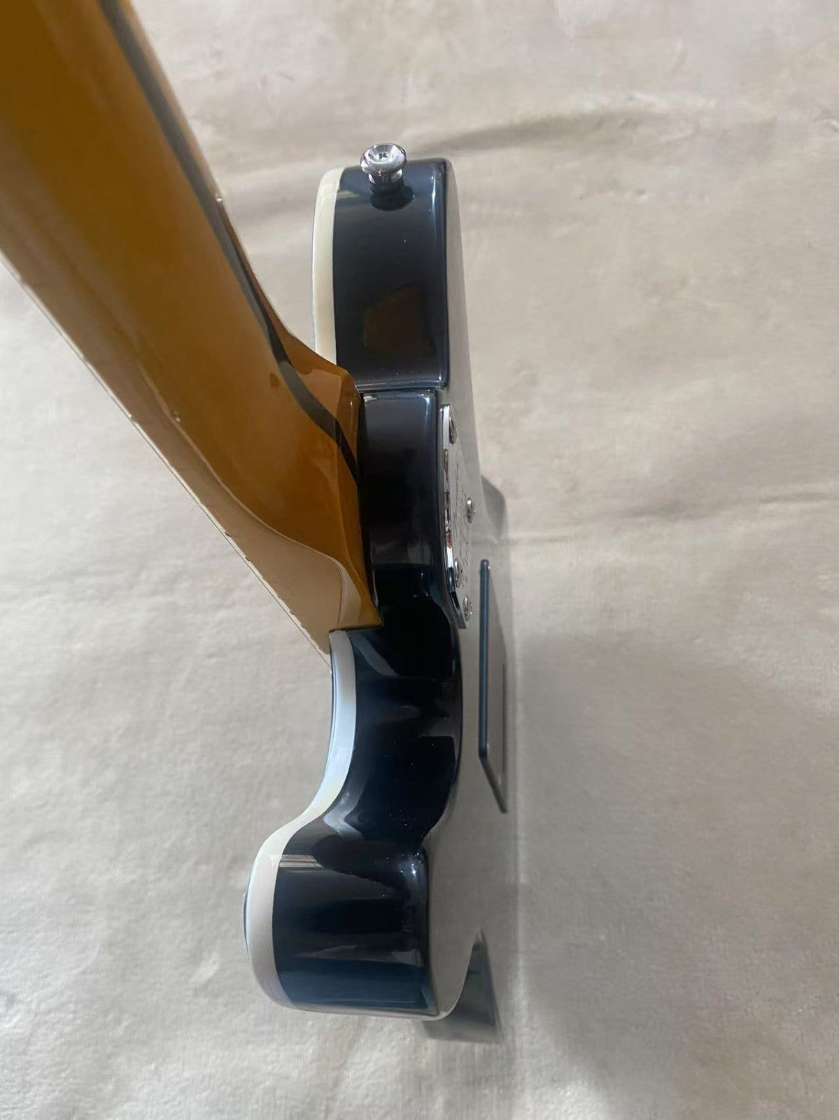 The BlackTelecaster Style Guitar is a custom-built electric guitar with a solid black basswood body and a rosewood fretboard, making it ideal for beginner players. This right-handed guitar features a maple neck, 6 string configuration, and a Floyd Rose tremolo system for added versatility and performance. With its sleek design and standard series model year of 2024, this guitar offers a classic Telecaster style in a high-quality and affordable package, perfect for musicians looking to hone their skills on a reliable and stylish instrument.