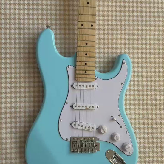 Turn heads with the bold, eye-catching style of this Turquoise Chinese-Made Stratocaster-style electric guitar. Combining iconic Strat design with modern Chinese craftsmanship, this guitar delivers impressive playability, reliable tone, and standout stage presence—all at a budget-friendly price.