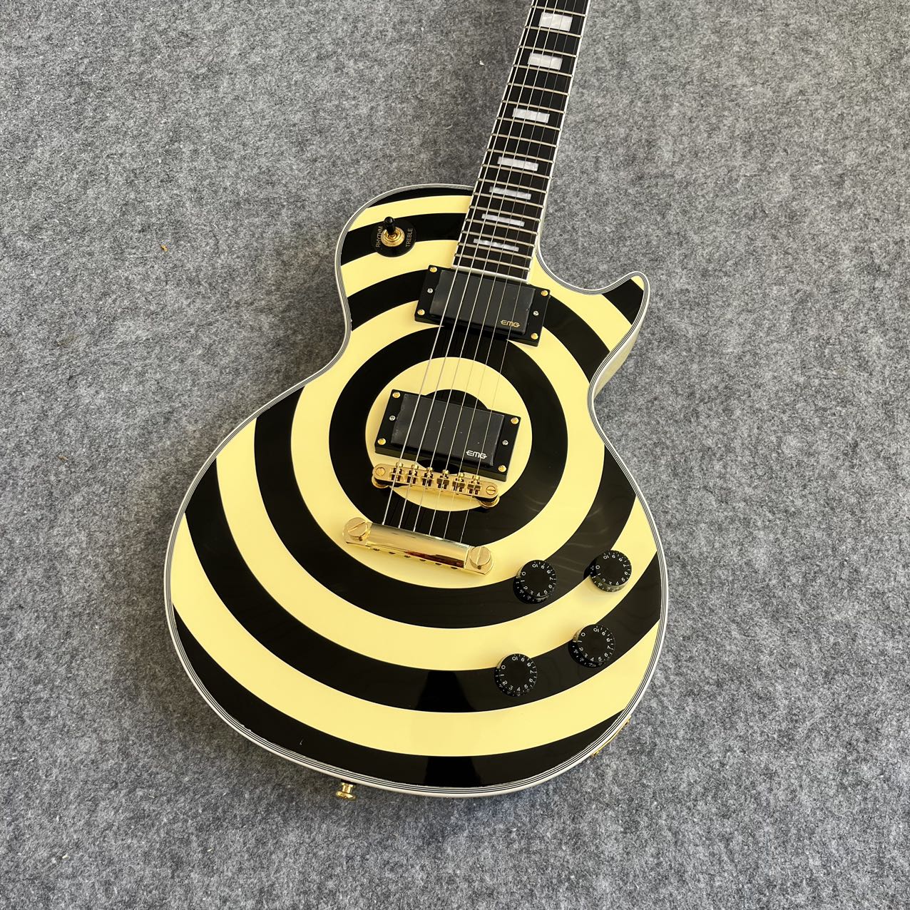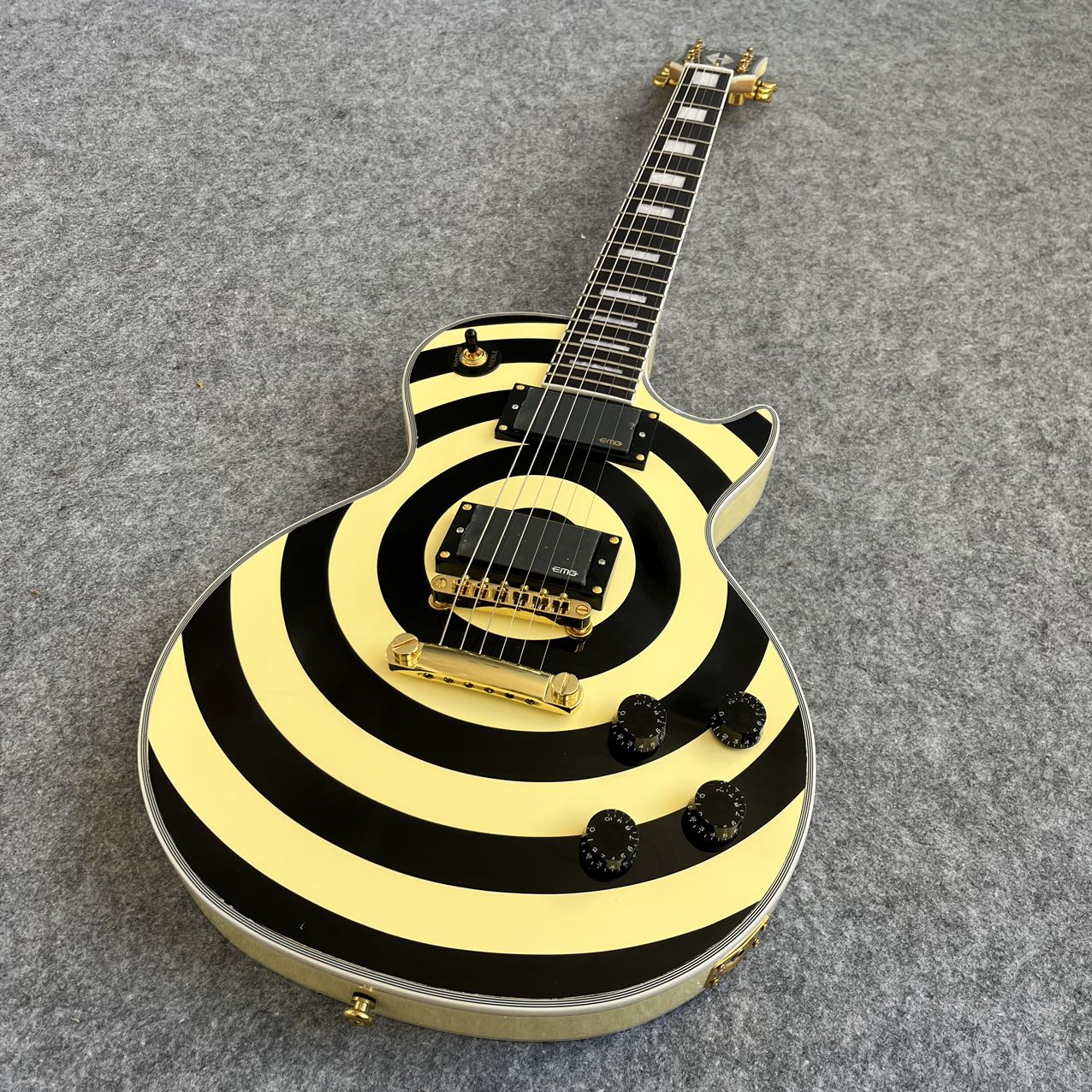 Bold “bullseye” graphic inspired by Zakk Wylde’s legendary guitars, making it instantly recognizable and stage-ready for rock and metal performances.